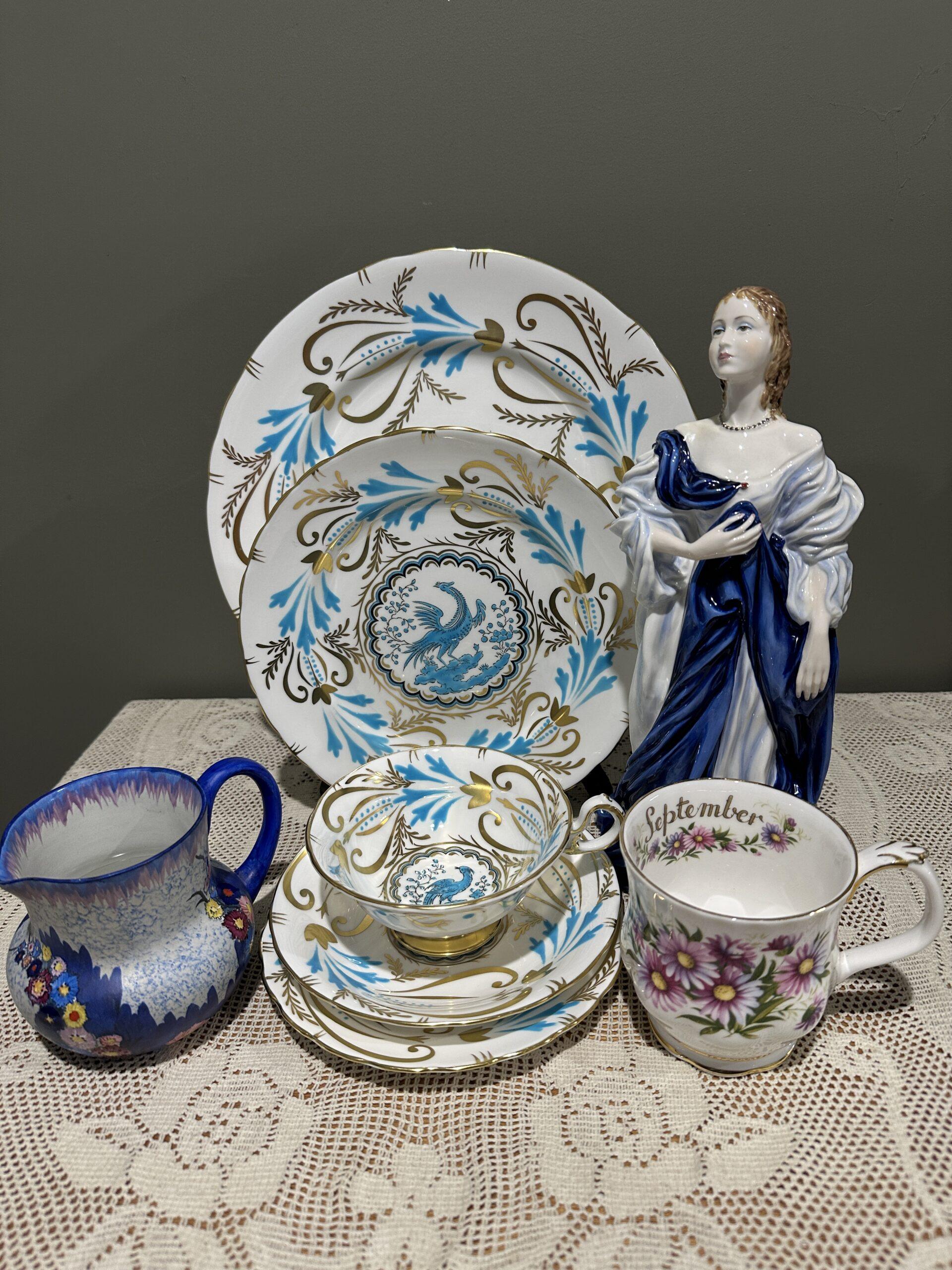 Sneak Peek For The Week – Rare Carlton Ware Garden Pattern Creamer, Coalport Limited Edition House Of Stuart Large Figurine, Royal Albert September Flower Of The Month Mug, Royal Chelsea Five Piece Place Setting For One