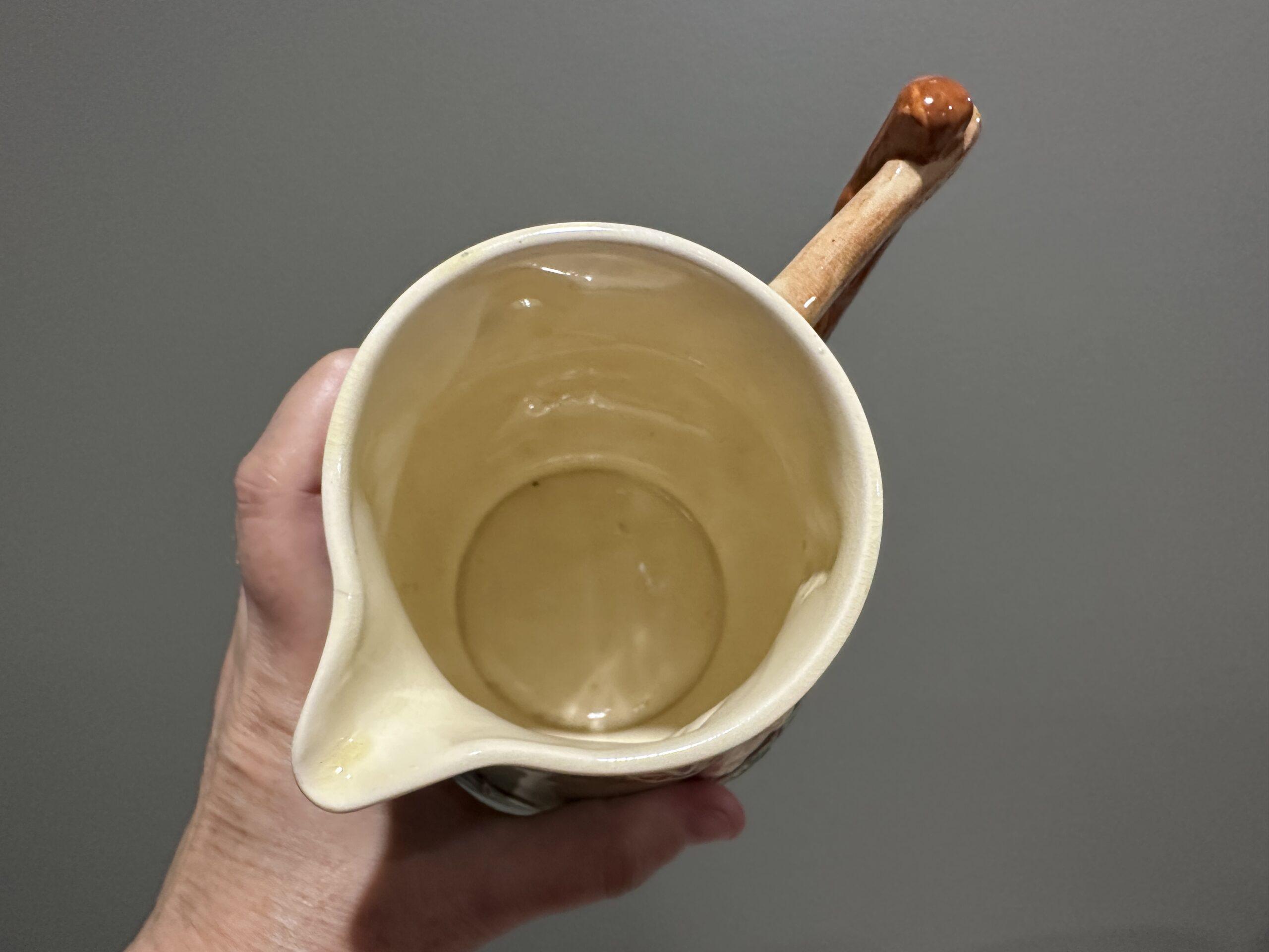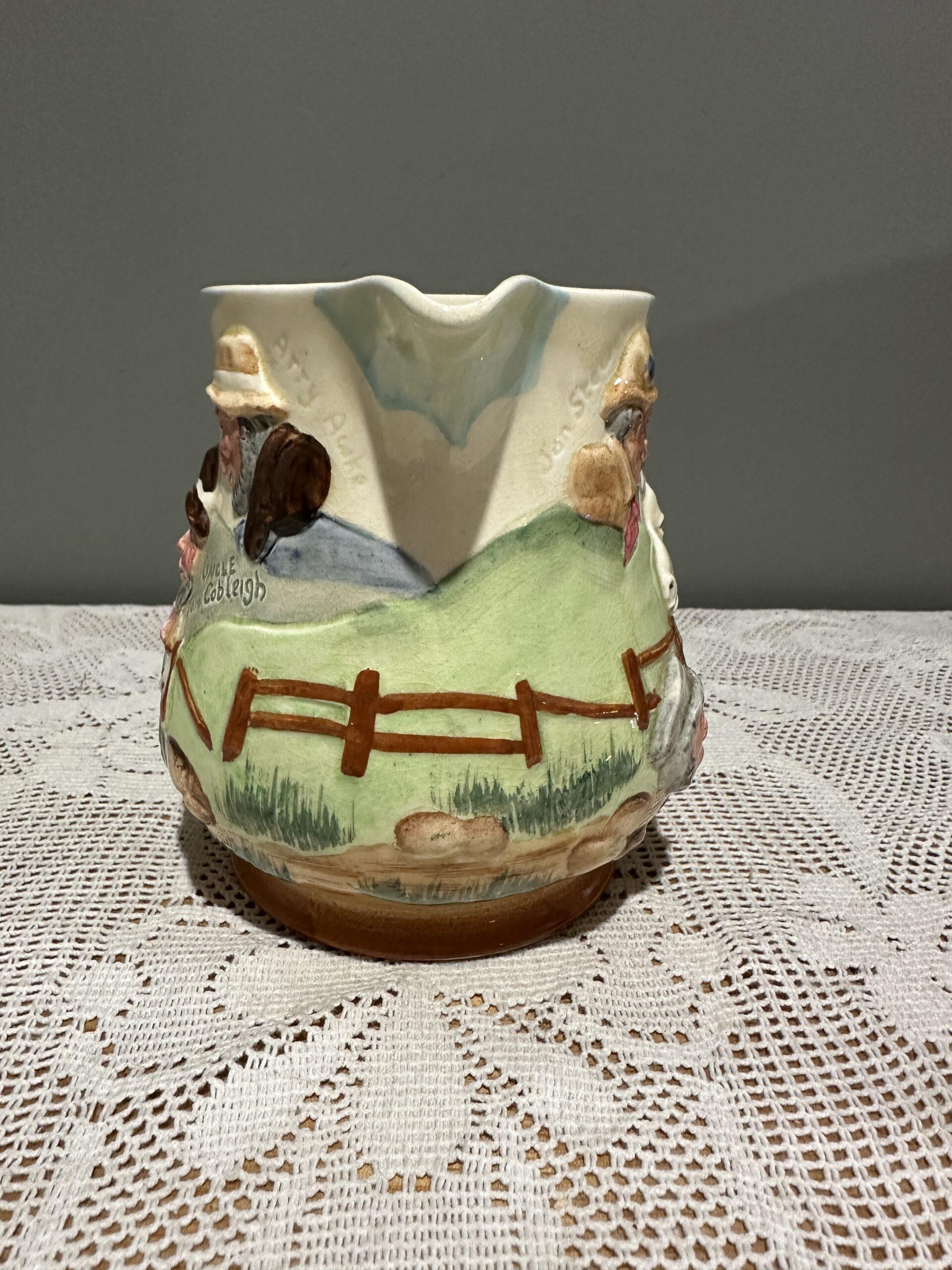 From Lancaster Sandland, this lovely milk just would look stunning in a country style kitchen. It features all the characters from the Widdicombe fair song including the horse! It measures 16cm from spout to handle, 13cm in height and is in great condition, just has very very fine and clean micro crazing to the glaze.