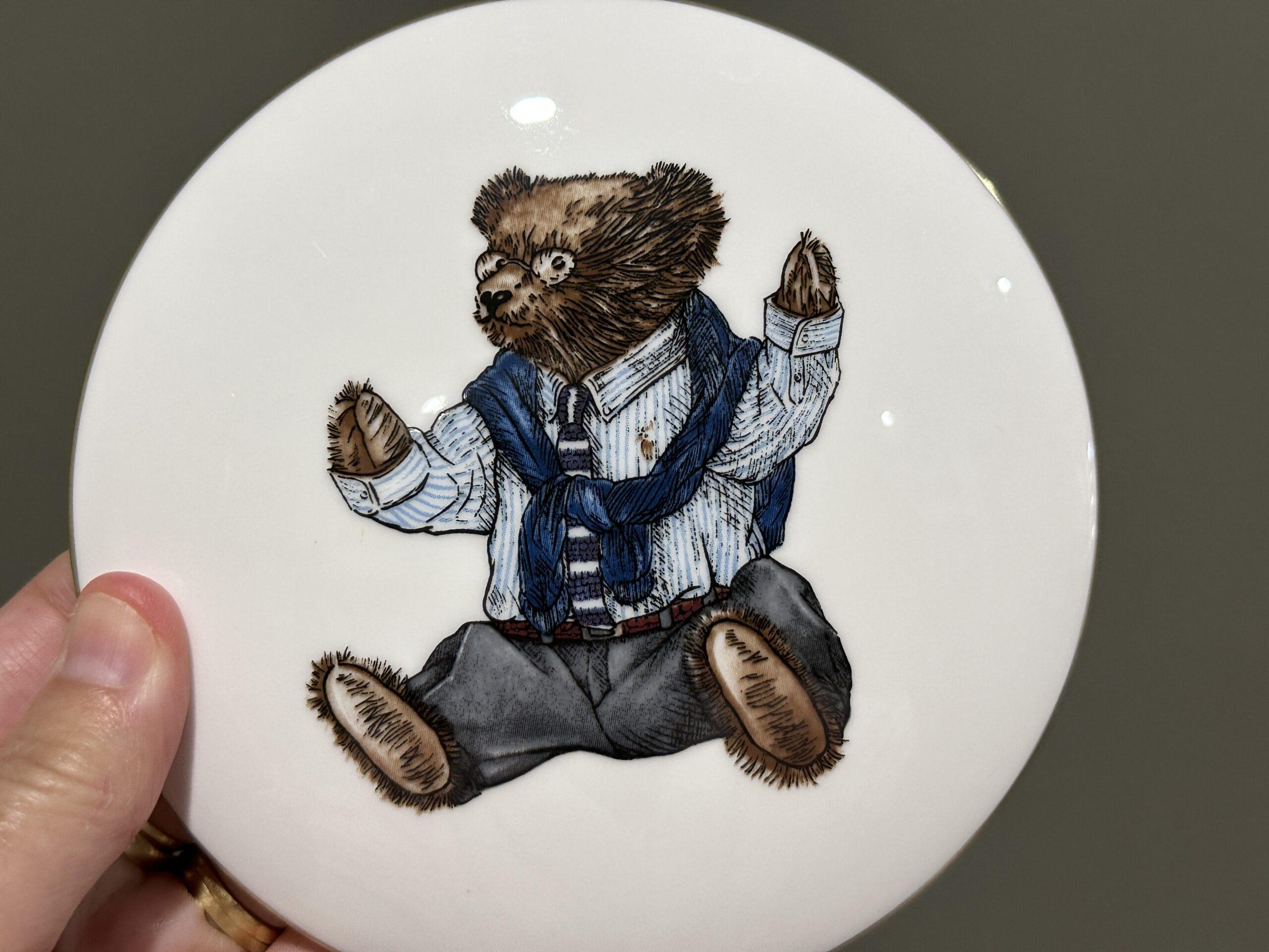 From Wedgwood, this lovely large lidded trinket bowl was made for Ralph Lauren. Featuring Polo Bear, it is a great size at 13cm diameter and 5.3cm deep. It has gilt trim and would suit Wedgwood collectors or bear collectors alike. It is in terrific condition, with just a couple of tiny scuff marks under the lid and under the base.