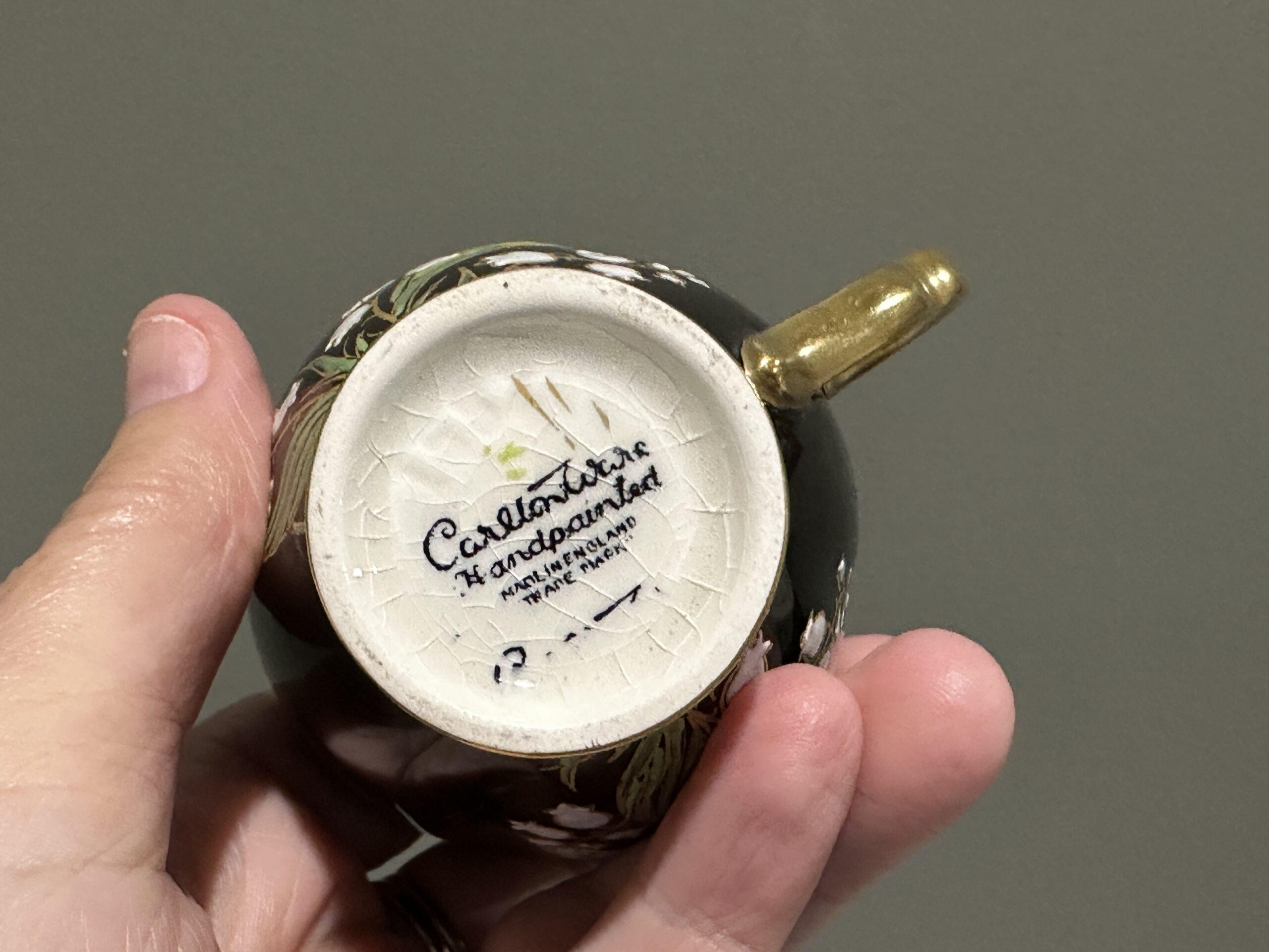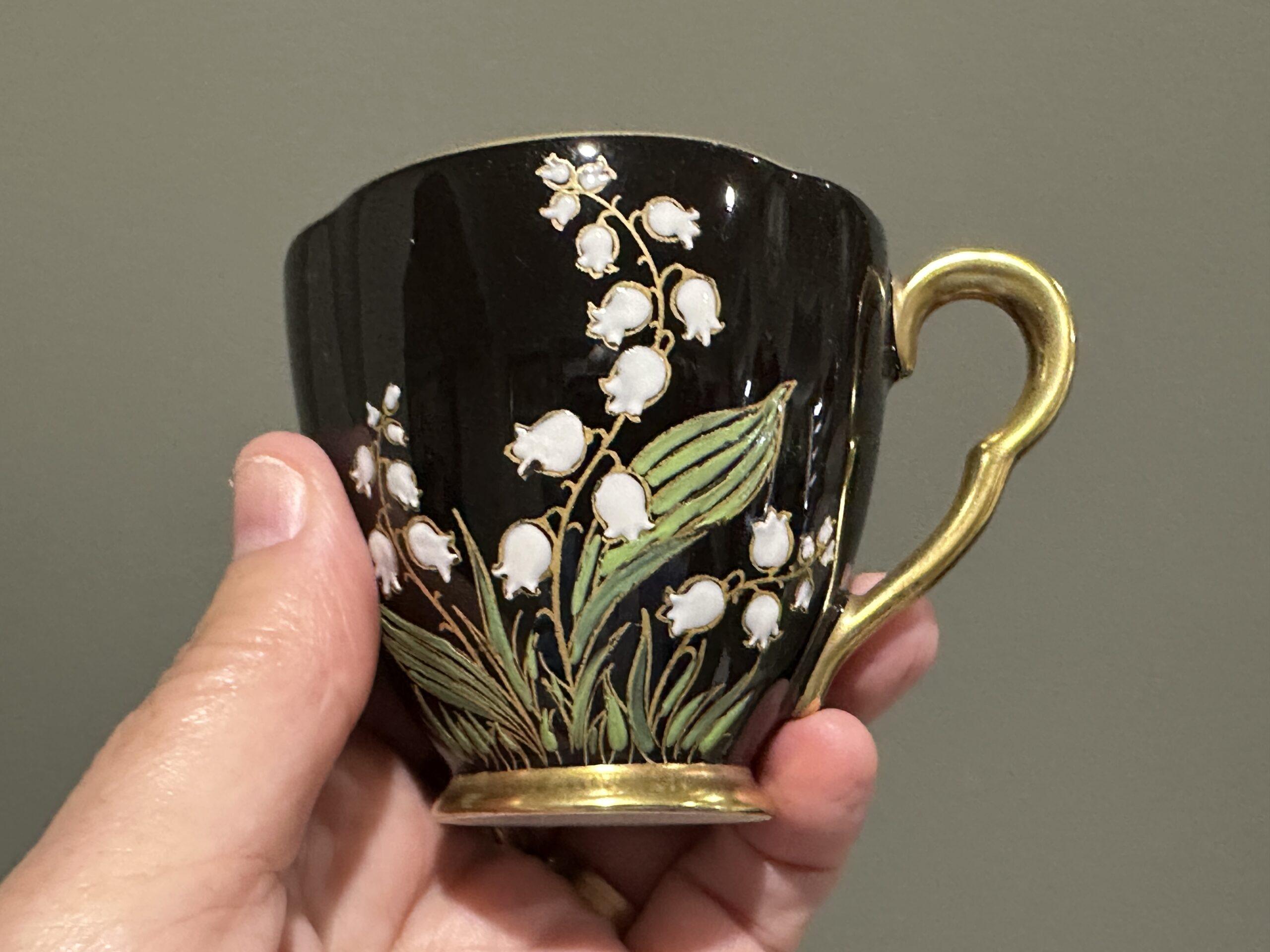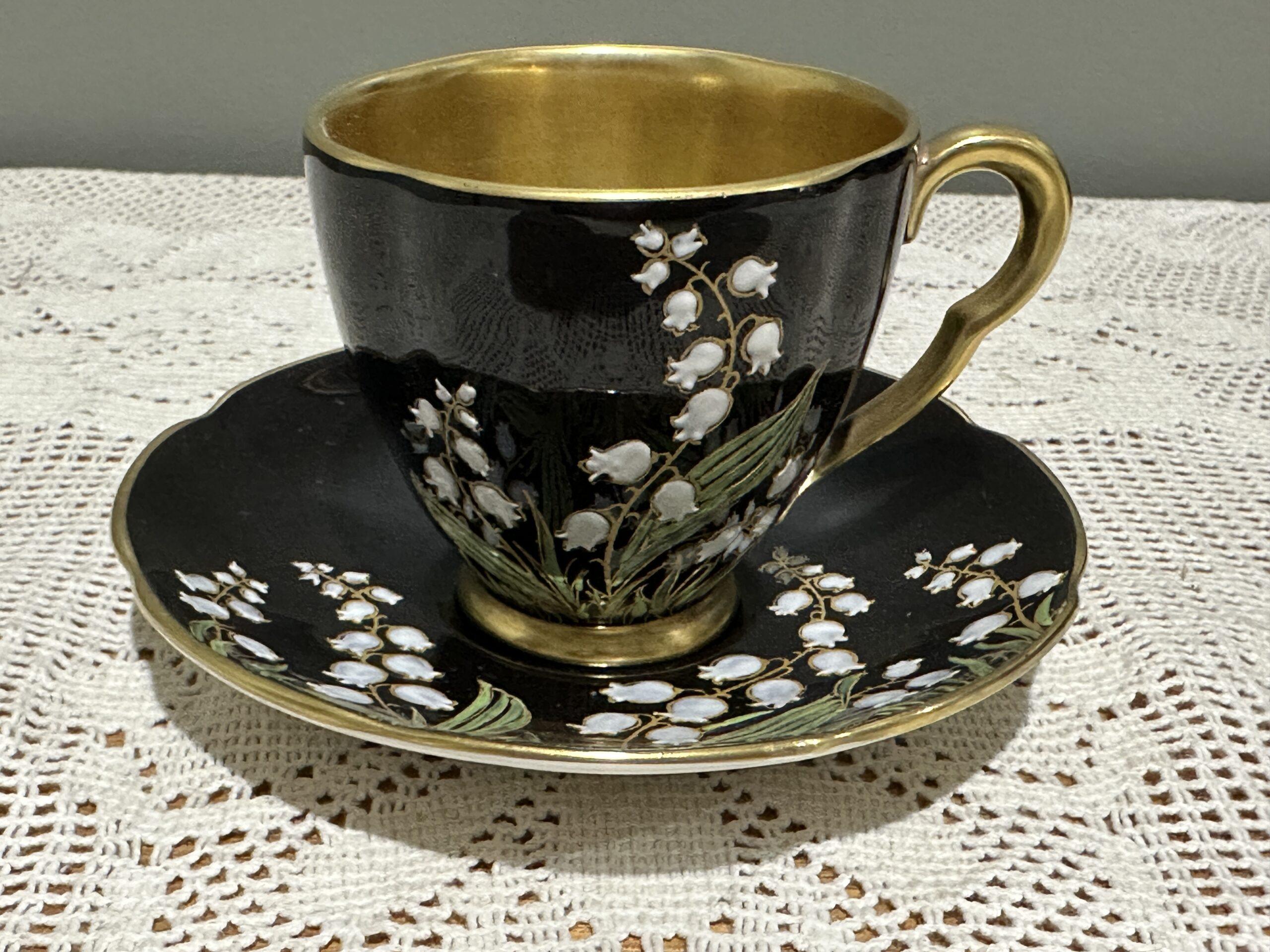 Rare Carlton Ware Demitasse Duo – Noire Royale – Lily Of The Valley – Heavily gilt