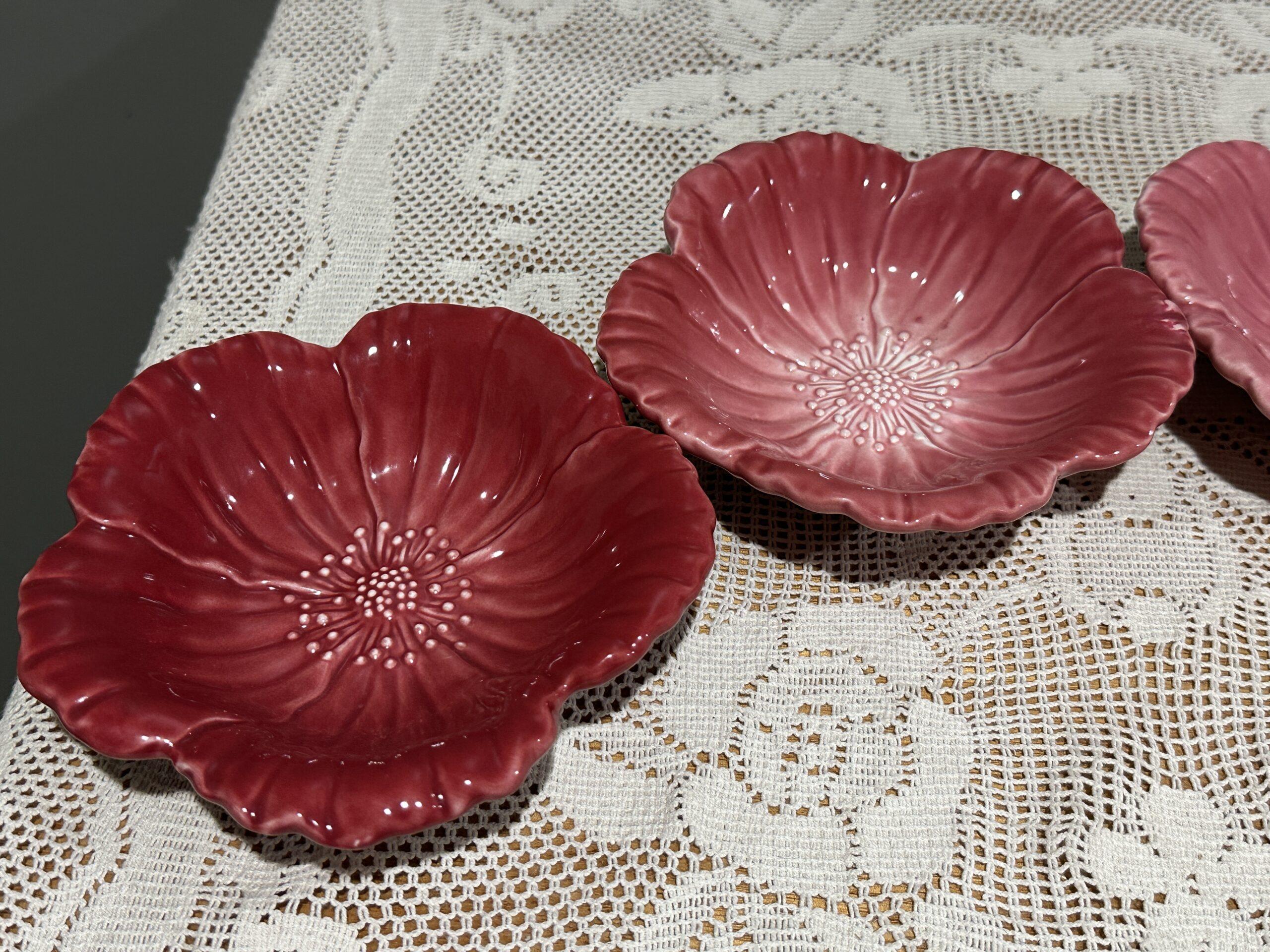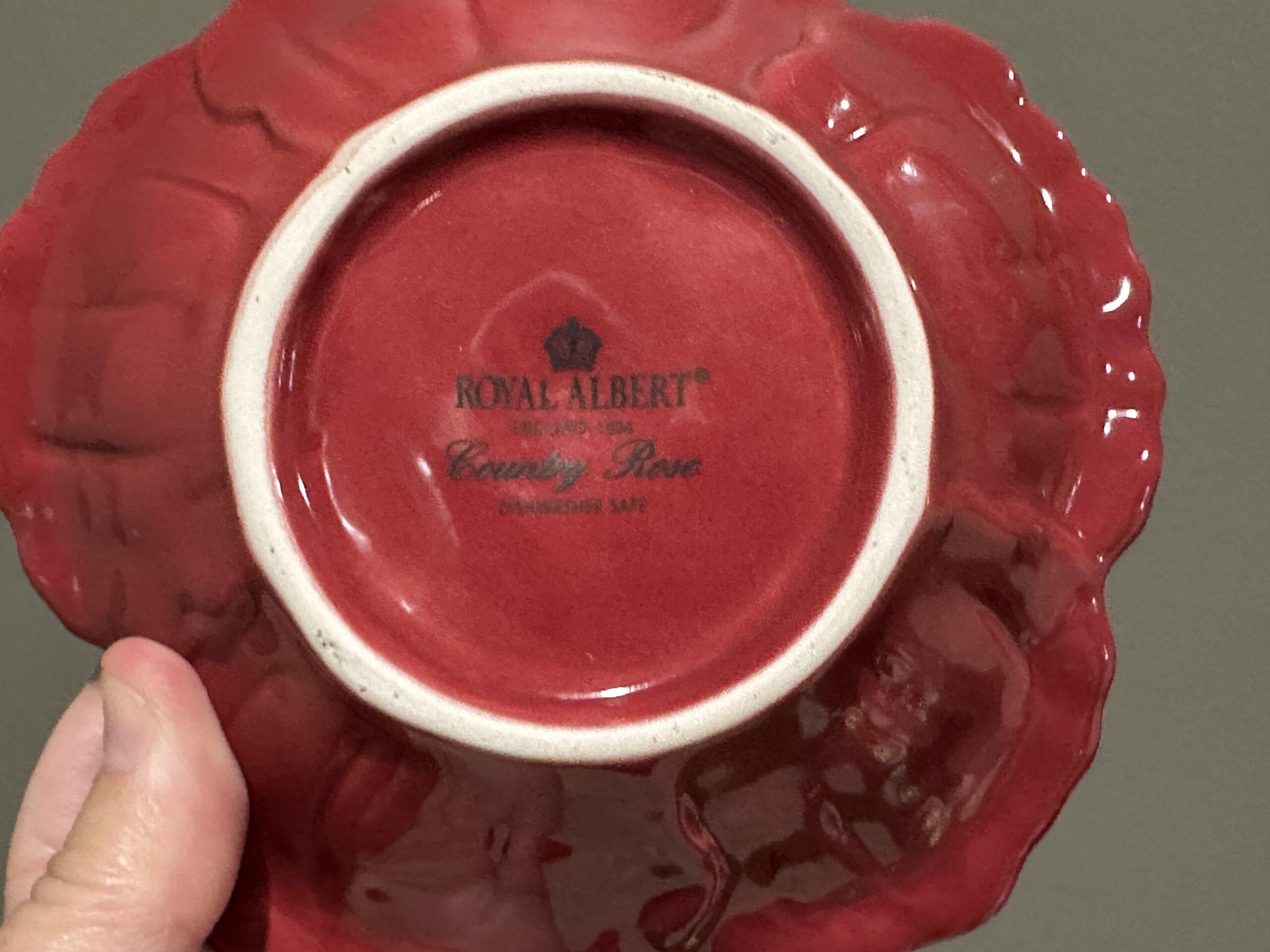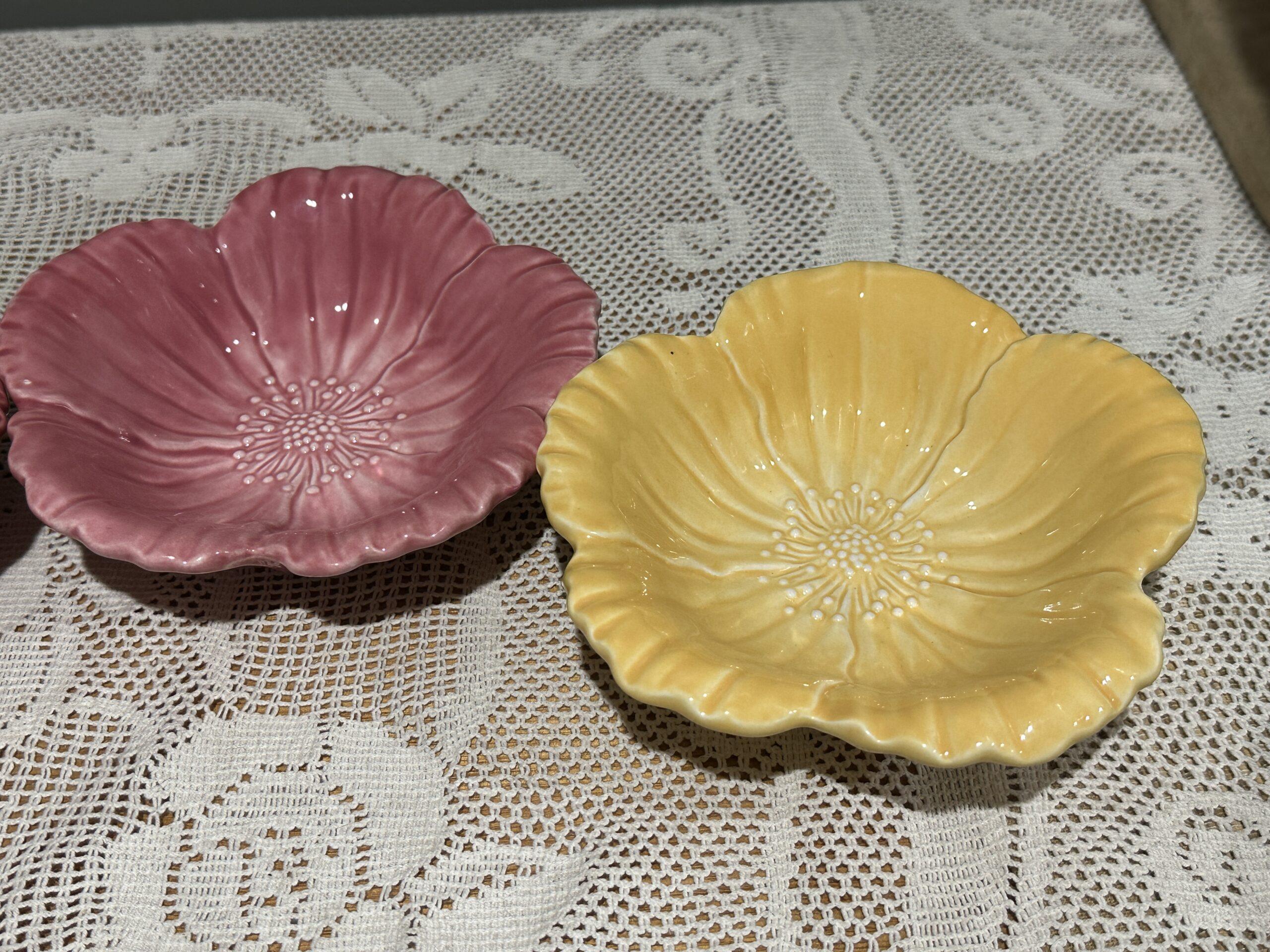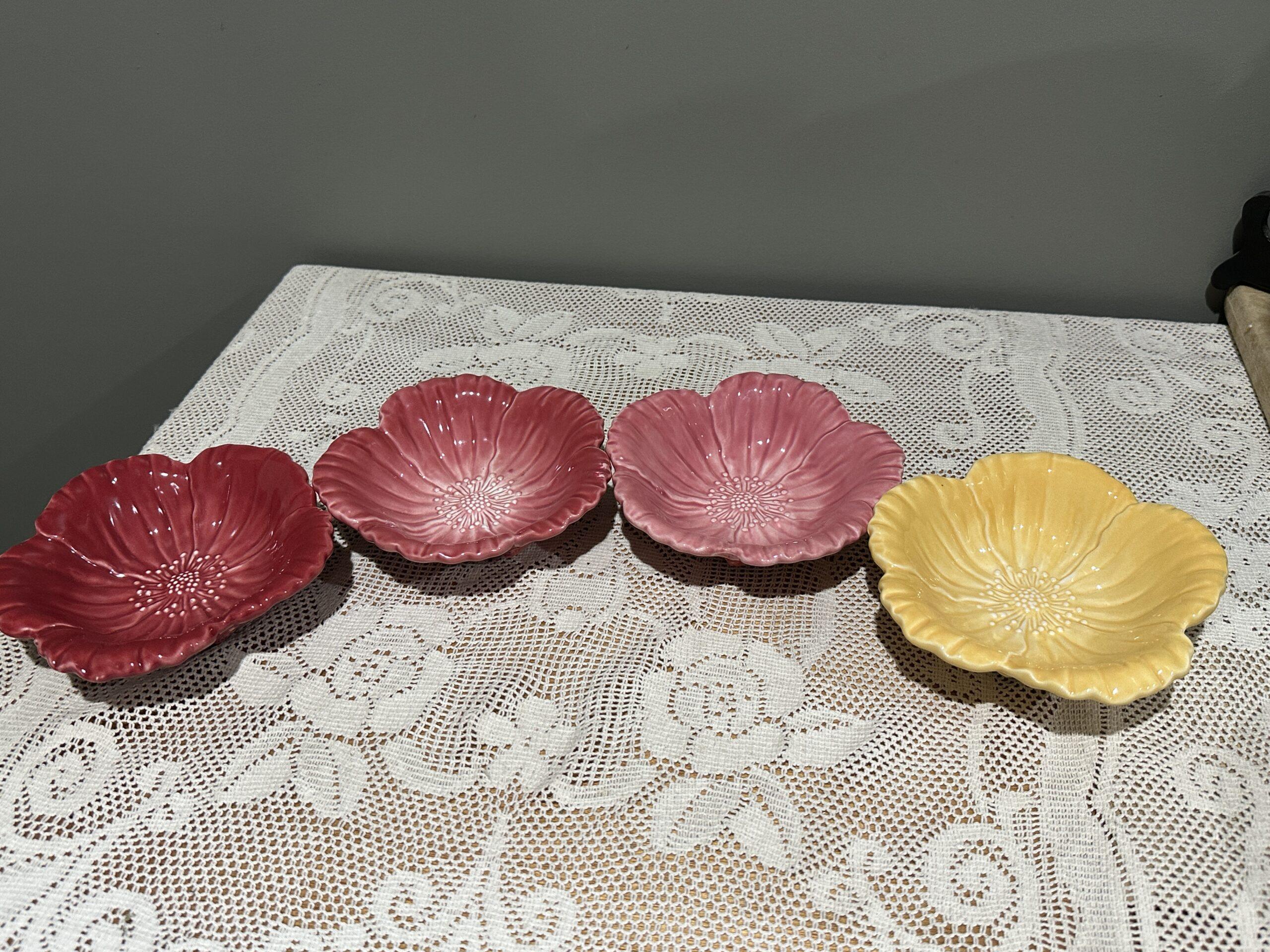 These stunning small bowls come from the Asian arm of Royal Albert by Royal Doulton. They are from the Country Rose series and feature a highly detailed and embossed floral shape. Coming in three shades of pink and a yellow, they are so pretty and measure just under 14cm diameter each. All four are in lovely order with no defects.
