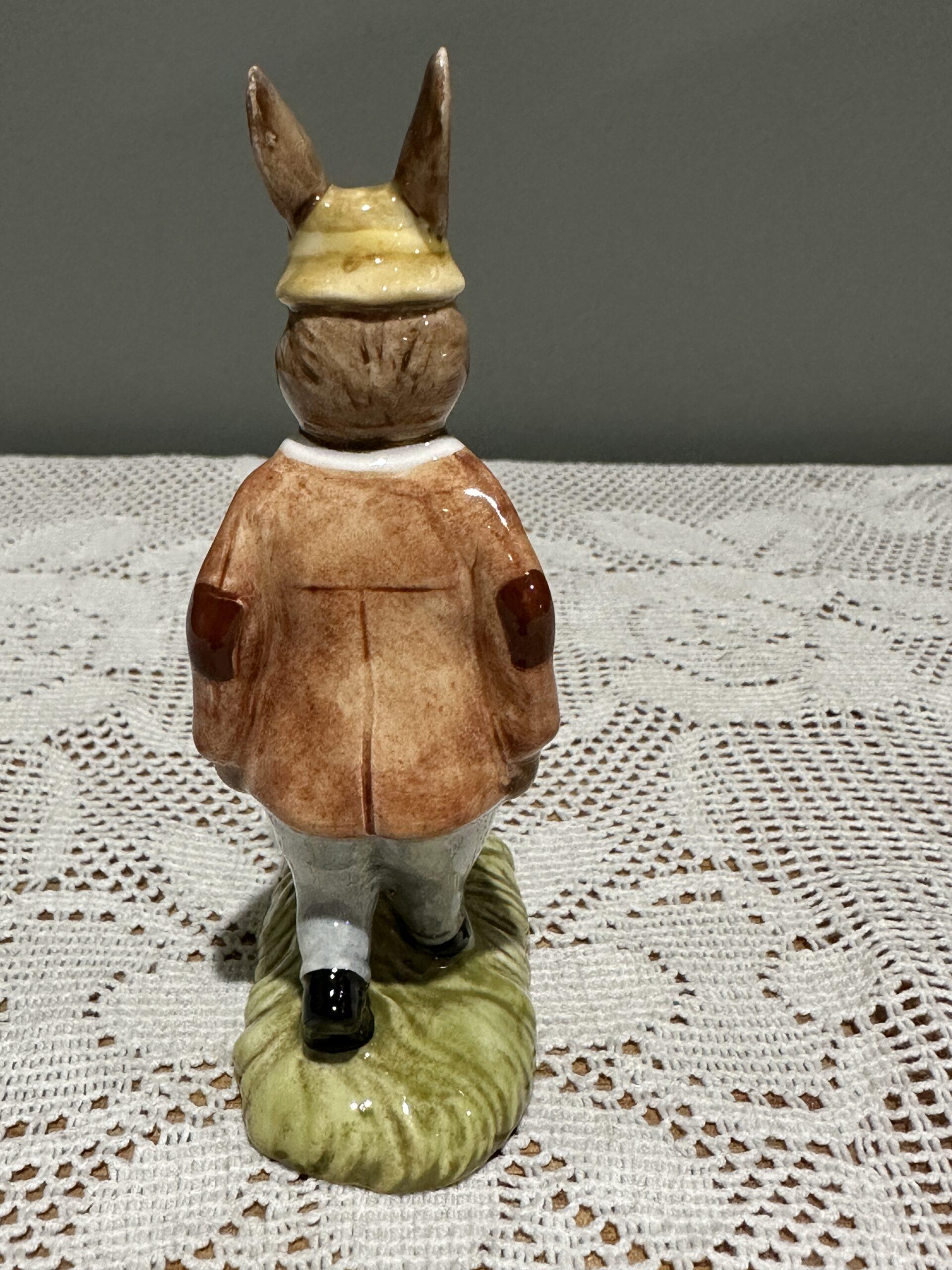 This lovely figurine comes from Royal Doulton’s Bunnykins range. Featuring gardener bunny, he is just adorable in his jacket and hat, with his wheelbarrow full of something that looks like sand. He measures 11cm in height and is in excellent order. He comes in his original box which has light wear.