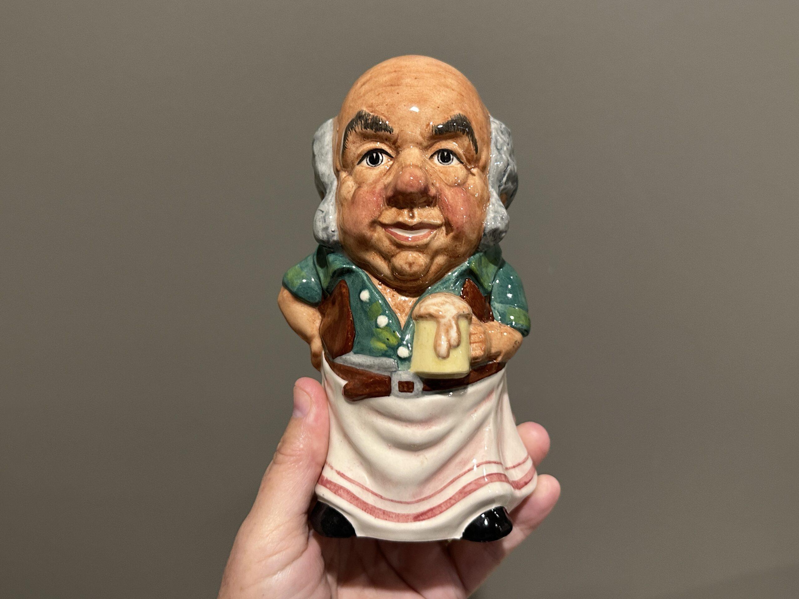 Manor in Staffordshire make the cutest character jugs. They are bright and colorful, quirky in design, and are full of personality. This one features the Innkeeper, and if you removed his mutton chops, he looks quite like my husband! He measures 15.8cm in height and is in great condition.